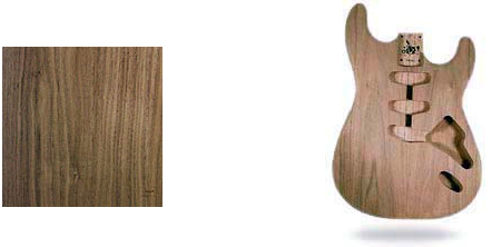白楊木,這是另一種被廣泛采用的木材,顏色為灰綠,只使用于純色漆,重量要比榿木重1.5磅,音色上與榿木相似.
