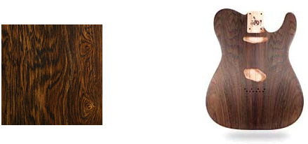 這種木頭在外觀上相當(dāng)漂亮,也有許多顏色,然而它們常用在琴身邊緣及acoustic 吉他的背面。