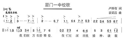 廈門一中校歌 簡譜/歌詞 作詞:盧梓省 作曲:袁榮昌