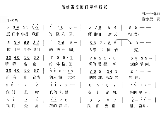 廈門第一中學校歌/廈門一中/廈門中學堂/玉屏書院 簡譜/歌詞