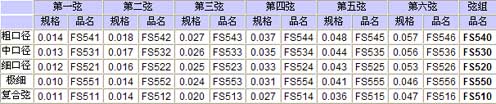 鋼弦組同時也依據(jù)它們的口徑或「規(guī)格」來分類:粗,中等,細,復合。鋼弦組同時也依據(jù)它們的口徑或「規(guī)格」來分類:粗,中等,細,復合。
