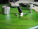 弦裝好,調(diào)好音后,接下來(lái)就要調(diào)琴柄的弧度。琴柄里的鋼條是有一個(gè)弧度的,當(dāng)被鎖緊的時(shí)候,它會(huì)將琴柄向后彎以平衡弦的拉力,使琴柄不會(huì)久了變形。每當(dāng)我們換不同拉力的弦時(shí),就必須調(diào)整鋼條的松緊以維持琴柄的弧度。要注意的是琴柄并不一定要維持直的,而是稍微有一點(diǎn)弧度,如此才不會(huì)在高把位時(shí)弦的高度太高,而在低把位弦太低而容易打到格子。理想的弧度可以如下測(cè)試:用移調(diào)夾夾在第一格,或用左手壓住第一格,再用右手在琴柄接到琴身的位置(通常是第十六格)壓下第六弦,然后在琴柄的中央位置(通常是第七格)檢視弦和琴格的距離是多少,通常 1 公釐左右是最理想的!貝司的距離需要更大,間格可以到 3 公釐。如果間隔太大,表示琴柄太彎,必須旋緊鋼條,如果間隔不夠,必須放松鋼條,但不管放松或鎖緊,每次都不要超過(guò)1/4圈,兩次之間可以等一下讓琴柄慢慢恢復(fù)。如果鋼條的螺絲已完全鎖緊或完全松脫,還是不能調(diào)到所需的弧度,表示這把琴有問(wèn)題,可能必須大修。另外要提醒大家的是,如果你的吉他久不彈,不要將弦松掉,否則柄內(nèi)的鋼條會(huì)將柄向后彎,久了就難拉會(huì)來(lái)了,如果你一定要將弦松掉,一定要把鋼條也松開(kāi)。