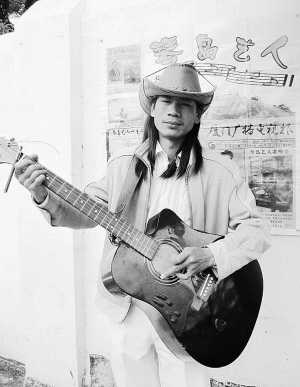 “不是我想用左手來彈,而是只能用左手來彈!崩畛謬@道。李朝林1972年生于貴州清鎮(zhèn),原來從事鉗工。14歲那年,他的左手受傷,無名指沒了。這對他來說是個致命的打擊,因為左手不能按和弦了。不過他太愛吉他了,加上手受傷了一時也沒法工作,他便決定學習用右手按和弦,左手來彈吉他,跟正常人的彈法恰恰相反。