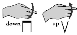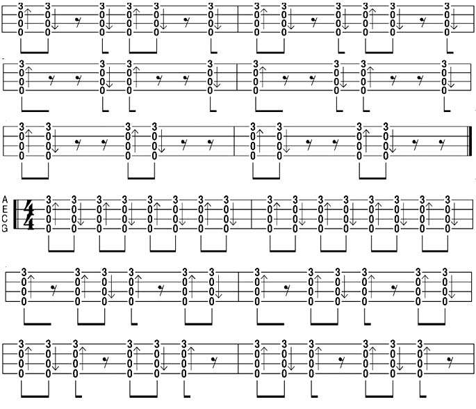 彈節(jié)奏的手法有兩種:down(向下彈)和up(向上彈),如下圖。