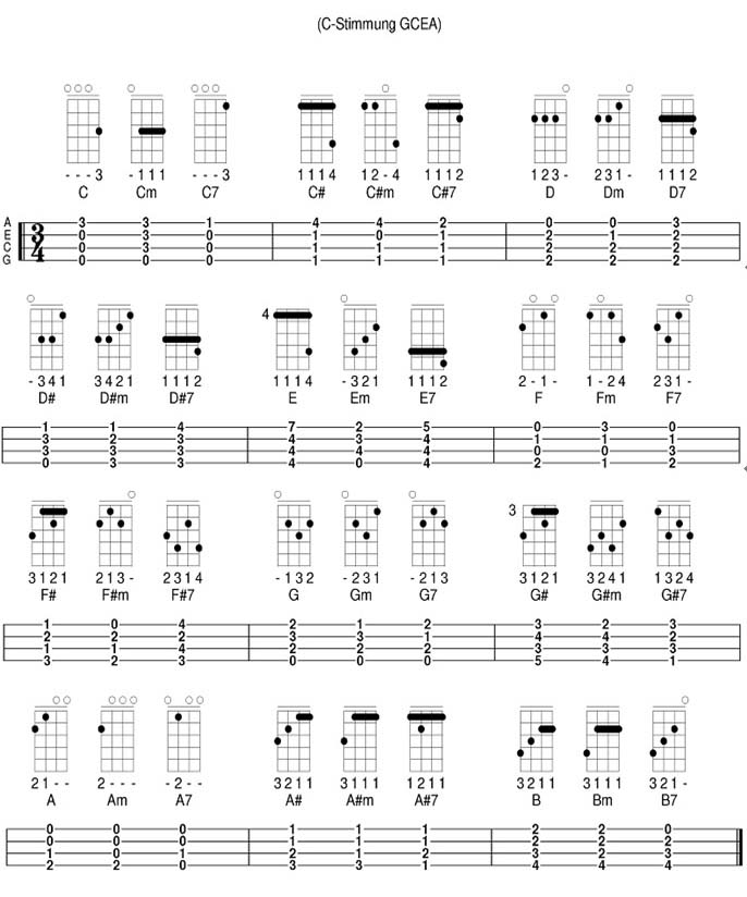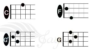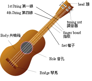 Ukulele用的是古典弦,第3旋最粗,2,1旋其次,最細(xì)的是第4旋。音從上往下是G、C、 E、A。