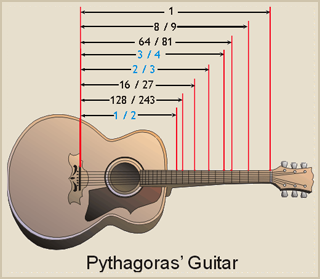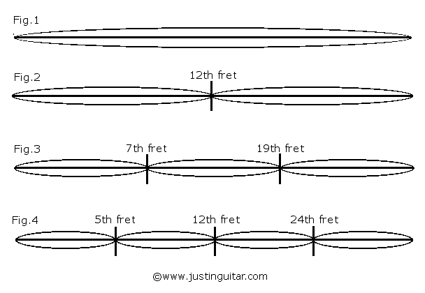 泛音的原理是這樣的:手指虛按在琴弦上(僅僅接觸琴弦但不用力),琴弦的振動將受到限制,只有以此觸點(diǎn)為節(jié)點(diǎn)的振動才被保留下來。如果觸點(diǎn)在琴弦的1/2處,那么泛音頻率就是琴弦基頻的2倍,如果觸點(diǎn)在琴弦的1/3或2/3處,那么泛音頻率就是琴弦基頻的3倍,依此類推。第三、四泛音有兩個(gè)觸點(diǎn),前面(靠近弦枕)的觸點(diǎn)比較容易演奏,后面(靠近琴馬)的觸點(diǎn)位置比實(shí)音略偏向琴馬,找起來很麻煩。泛音級數(shù)越高,音色就越虛,更接近于笛聲或唱歌時(shí)的假聲,常用的泛音不超過第四泛音,第六泛音以上就幾乎發(fā)不出聲音了。