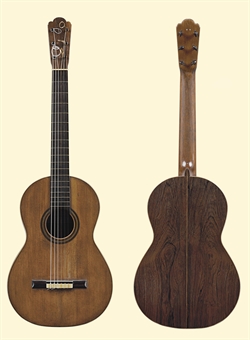 Lot Description ANTONIO DE TORRES A GUITAR, SEVILLE, 1864 Labeled LA HIZO ANTONIO DE TORRES JURADO ALMERIA ANO DE 1852, length of back 18 7/16 in (468 mm) with case .