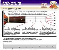 “六線譜”又名“TAB譜”(達(dá)普譜)六條線表示吉他六條弦,由上往下數(shù):一弦、二弦、三弦、四弦、五弦、六弦。六線譜是把吉他的六根弦對(duì)應(yīng)地劃出六條平行的橫線來表示兩手演奏的位置和動(dòng)作(即指法),而不是記錄的音的高低,但它與簡譜或五線譜結(jié)合對(duì)照起來使用時(shí)非常方便,既能表示音高,又能表示指法。