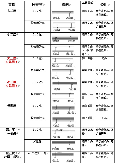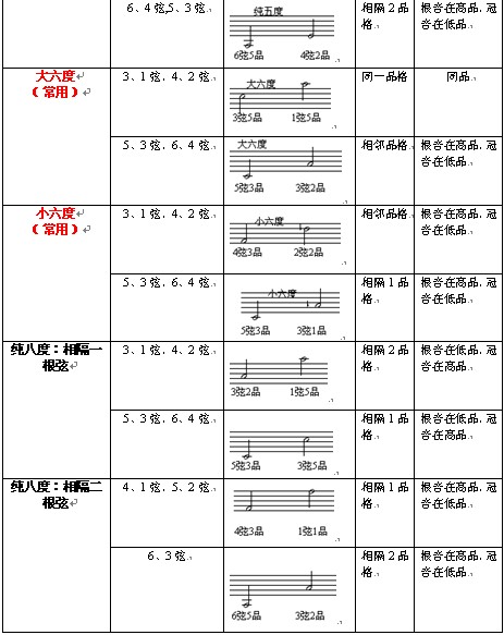 常用音程及其吉他品位相對(duì)關(guān)系表