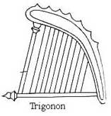 研究古希臘音樂者謂彼時(shí)弦鳴樂器可分為如下二種,即豎琴類和抱琴類。豎琴類比如Trigonon τρίγωνον,三角豎琴,可能是源自埃及或亞述人,有二十弦。比這樂器小些但形制相同的psalterion,ψάλτρια,女式用琴,拜占庭晚期成了通用名。還有simikion,三十五弦。馬伽迪斯琴magadis,μάγ δις,二十弦,曾在色諾芬的《長(zhǎng)征記》中出現(xiàn)過。