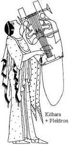有傳說言赫爾墨斯贈(zèng)與阿波羅的,就是這種樂器,顯然因?yàn)槭褂昧四桥Fぷ銮偃囚[了他的兄長(zhǎng)。其次古老的是phorminx,φόρμιγξ,它的共鳴箱上有兩個(gè)音孔,這是一個(gè)特征;再有齊塔拉琴κιθάρα,cithara,便是荷馬操用的樂器了(荷馬稱之為catharis,κίθᾰρις),是從phorminx演變出來的,共鳴箱更大了,可能音色會(huì)更響亮些。