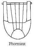 附記lyre的組成:共鳴箱echeion χεον、兩個(gè)琴臂peichis πήχες或kerata κερατά、橫欄zygon ζυγόν連接兩臂,弦chordai χόρδαι或neurai νευρά,腸衣線或亞麻線,縛在chordotonion或chordotonos上,此位于共鳴箱下部。弦由琴橋magas μγας架起來,伸至橫欄上,這端是活動(dòng)的,由皮革、棉線環(huán)或栓子做成,可來回調(diào)節(jié)松緊,稱作kollaboiκόλλβος或kollops κόλλοψ。據(jù)拜占庭時(shí)代的一名作家Eustathius所云,phorminx的活栓是由牛羊的項(xiàng)部皮革制成。