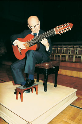 耶佩斯,N.,Narciso Yepes (1927~)西班牙吉他演奏家、作曲家。1927年11月14日生于洛爾卡。13歲開始學(xué)音樂,在巴倫西亞音樂學(xué)院從作曲家與鋼琴家V.阿森西奧鉆研吉他演奏技術(shù)。1947年受馬德里國家管弦樂團(tuán)指揮A.阿亨塔的邀請,赴首都舉行首次演奏會,演出了西班牙名作曲家J.羅德里戈的《阿蘭胡埃斯協(xié)奏曲》。此后他隨阿亨塔和樂團(tuán)赴歐洲巡回演出。1950年留學(xué)巴黎,從鋼琴家W.吉澤金及作曲家、指揮家G.埃奈斯庫深造,并不斷舉行音樂會。1960~1970年他遍游東西歐、南北美及遠(yuǎn)東各國。他的創(chuàng)作主要是將17~18世紀(jì)許多被人們遺忘了的樂曲及西班牙傳統(tǒng)樂曲移植為吉他曲。他錄制的唱片有全部巴赫的琉特作品,羅德里戈及E.阿爾夫特的幾首吉他協(xié)奏曲,以及巴羅克時(shí)期音樂和西班牙吉他傳統(tǒng)樂曲。耶佩斯對吉他音樂的另一貢獻(xiàn),是設(shè)計(jì)了一種10弦吉他,增加的4弦在低音部,10弦定弦為bG、bA、bB、C、E、A、d、g、b、e1(E~e1為六弦吉他的標(biāo)準(zhǔn)調(diào)音)。這一革新使音響更為豐實(shí),增強(qiáng)了吉他的表現(xiàn)力。