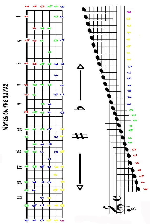 知道了這些,你就可以在吉他上的任意一根弦上彈出1 2 3 4 5 6 7音階.記住3和4 以及7和1之間是相鄰的兩個品,其它各音之間要隔一個品.如:3在第二品,4就在第三品;7是空弦音,1就在該弦的第一品其它各音之間要隔一個品:如5在第三品,6就在第五品;再如:1在第一品,2就在第三品.