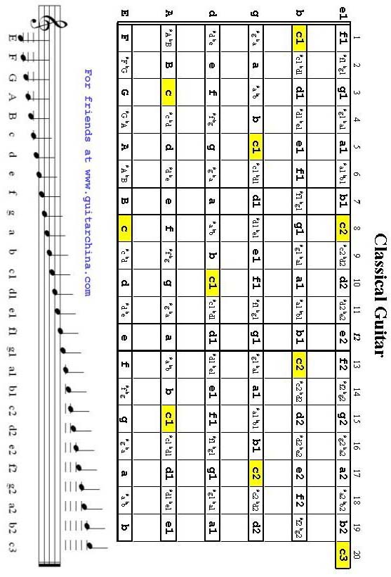 知道了這些規(guī)律,我再告訴你C調(diào)的1在五弦的第三品,另外,比這個1高八度的1,在二弦的第一品.就這樣,你根據(jù)這些規(guī)律先在吉他上自己去摸索C調(diào)的音階吧.