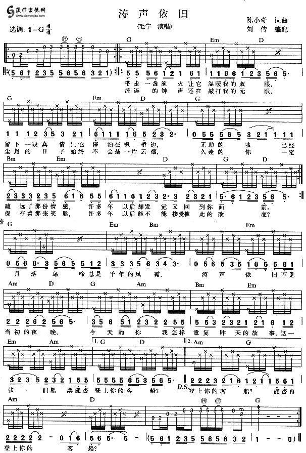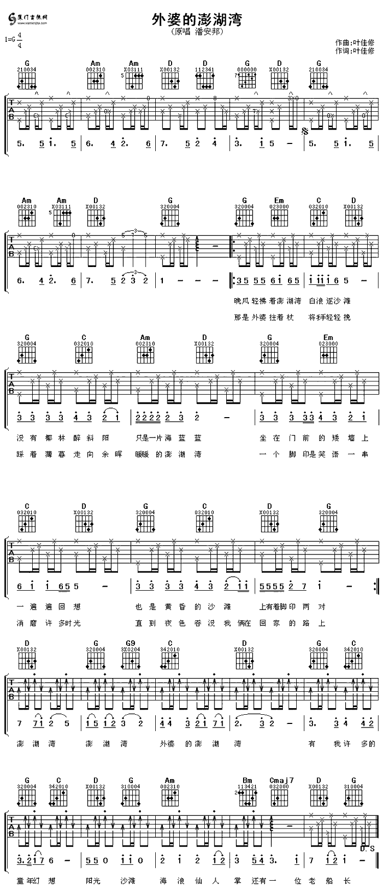 外婆的澎湖灣(潘安邦)六線譜/簡譜/歌詞/簡介
