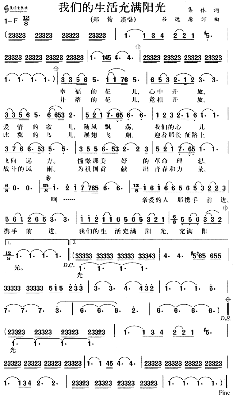 我們的生活充滿陽光(鄭鈞)簡譜/歌詞