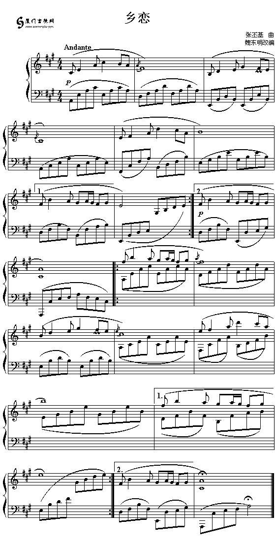 鄉(xiāng)戀(李谷一)五線譜/簡譜/歌詞