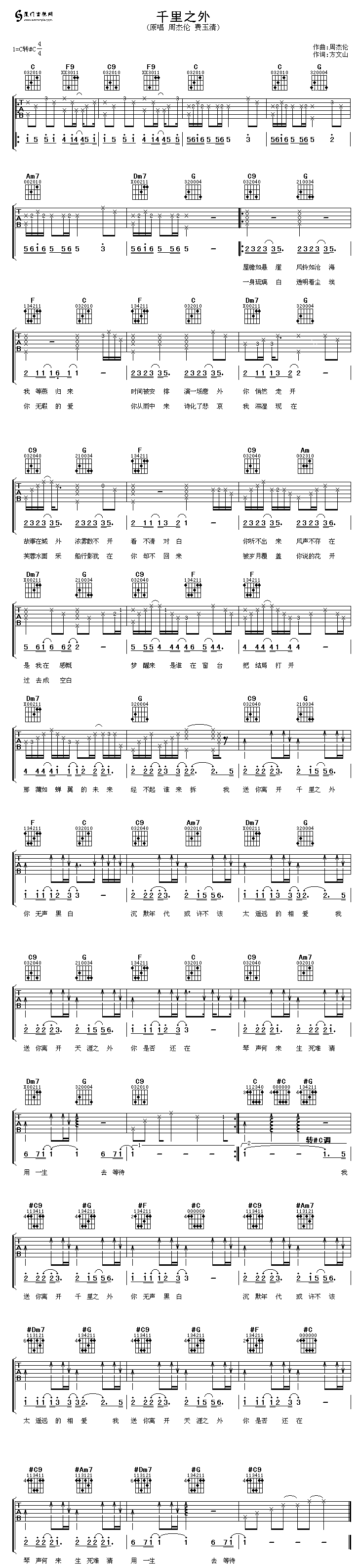 千里之外(周杰倫/費(fèi)玉清)六線譜/簡譜/歌詞