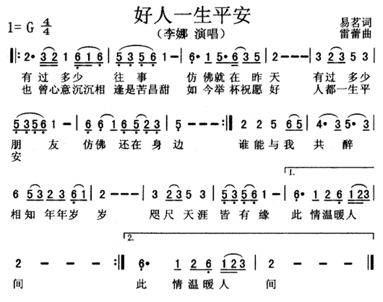 好人一生平安(李娜)簡譜/歌詞/簡介