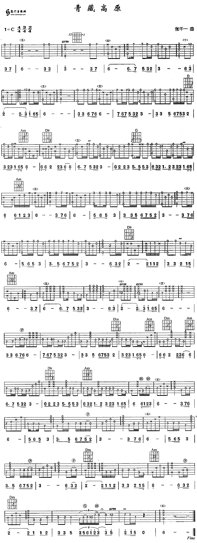 青藏高原(李娜)六線譜/獨(dú)奏/簡譜/歌詞