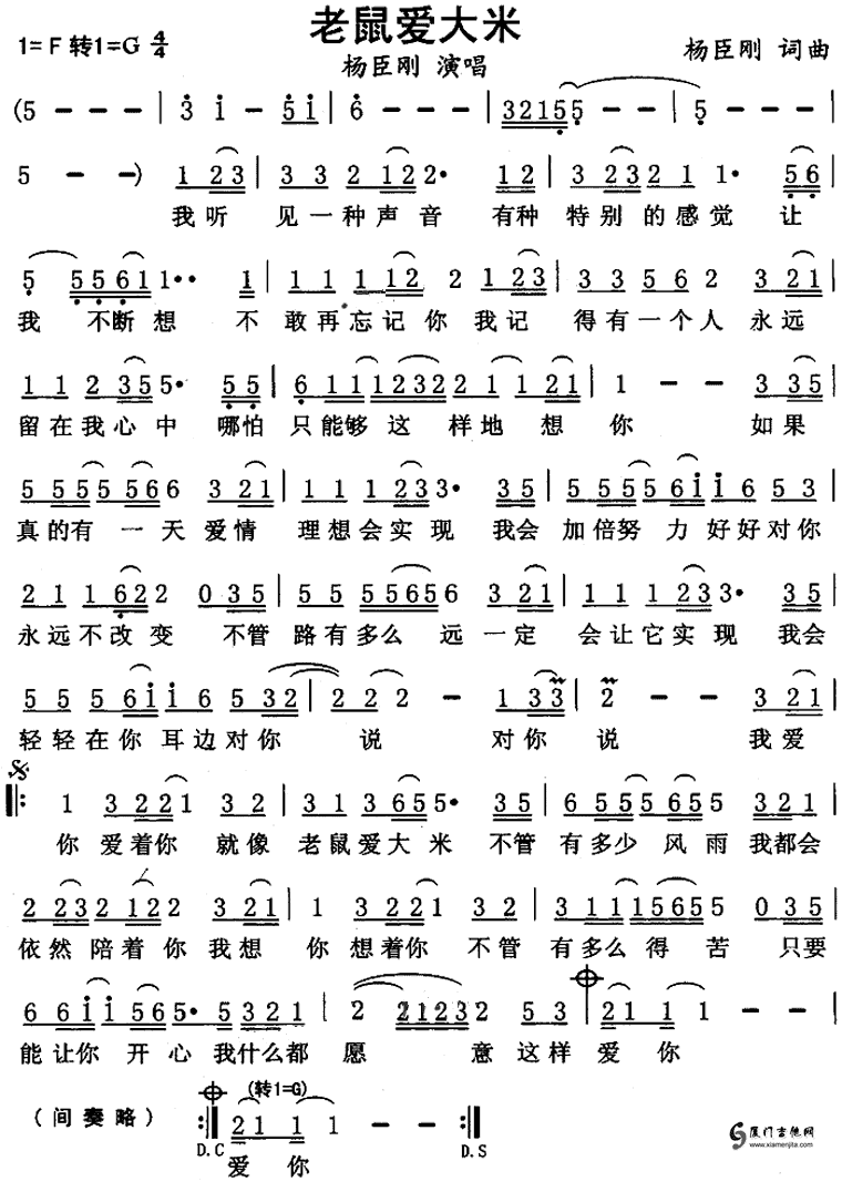 老鼠愛大米(楊臣剛)簡譜/歌詞