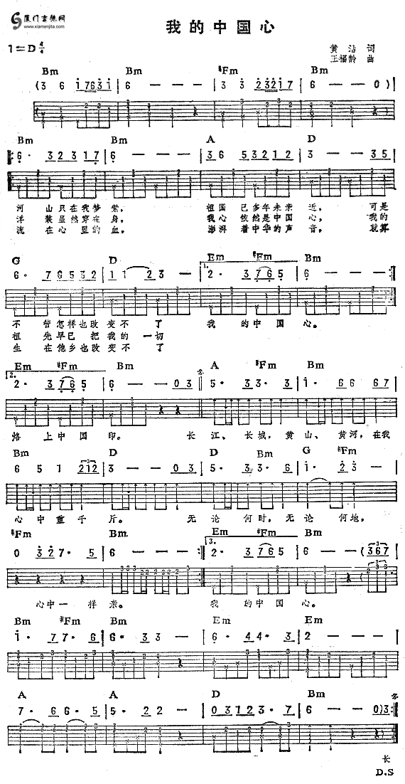 我的中國心(張明敏)六線譜/簡譜/歌詞