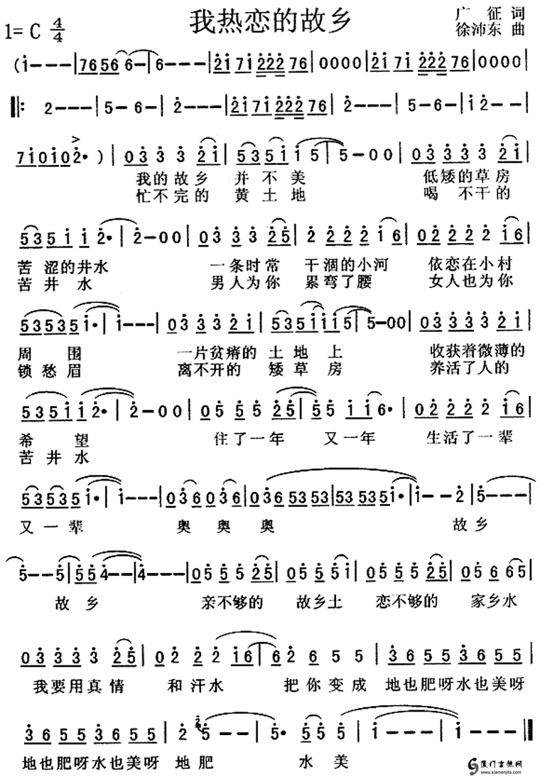 我熱戀的故鄉(xiāng)(徐沛東)簡譜/歌詞/簡介