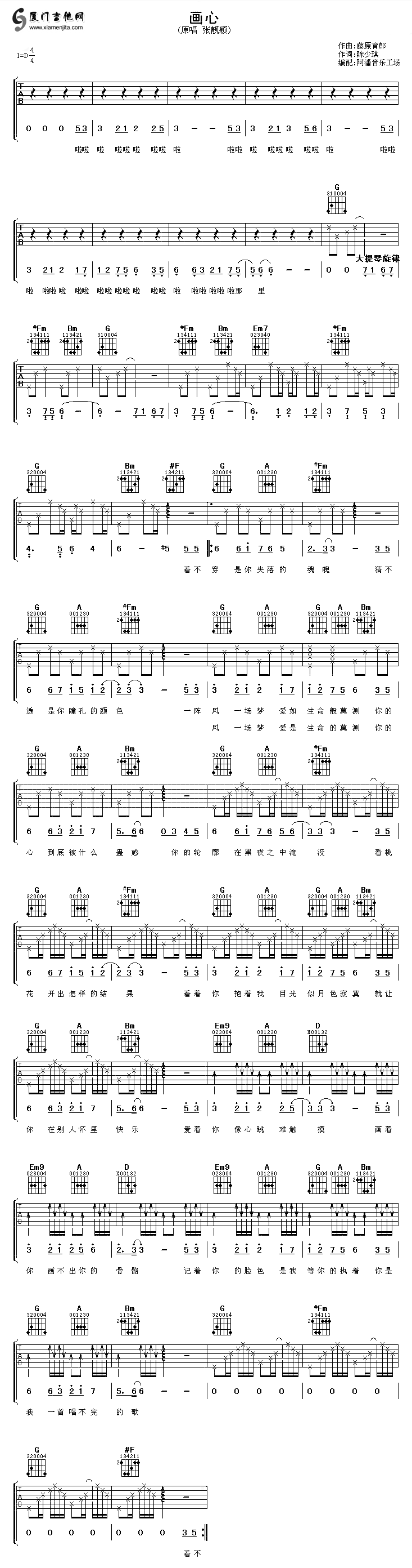 畫心(畫皮主題曲) 六線譜/簡(jiǎn)譜/歌詞