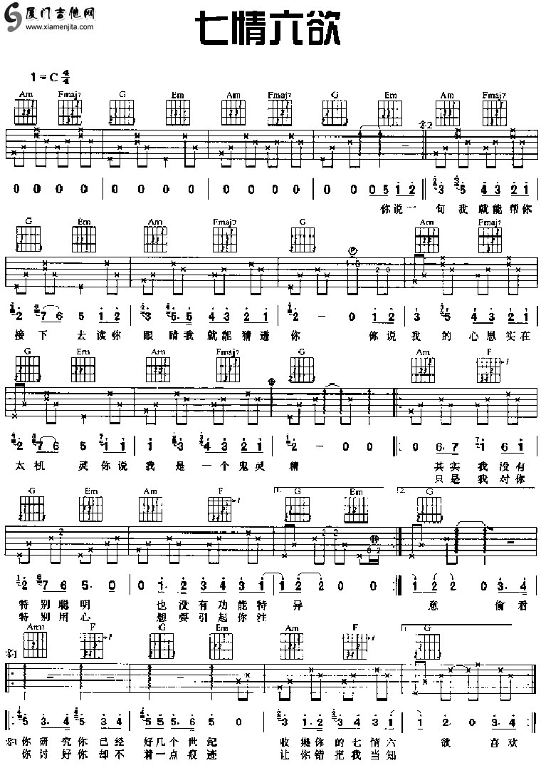 七情六欲 六線譜/簡(jiǎn)譜/歌詞