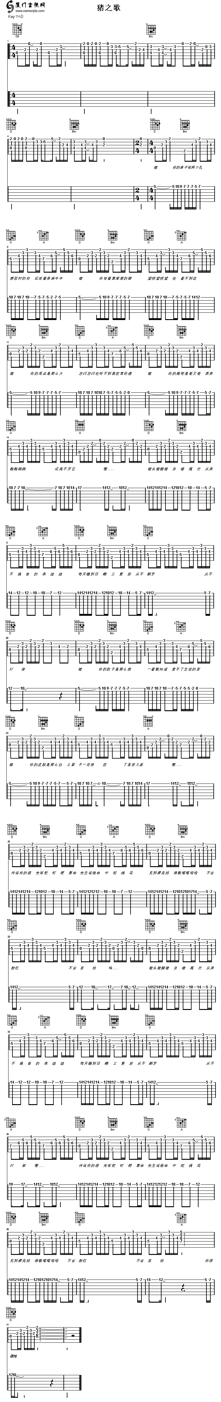 豬之歌(香香)雙吉他/六線譜/簡(jiǎn)譜/歌詞