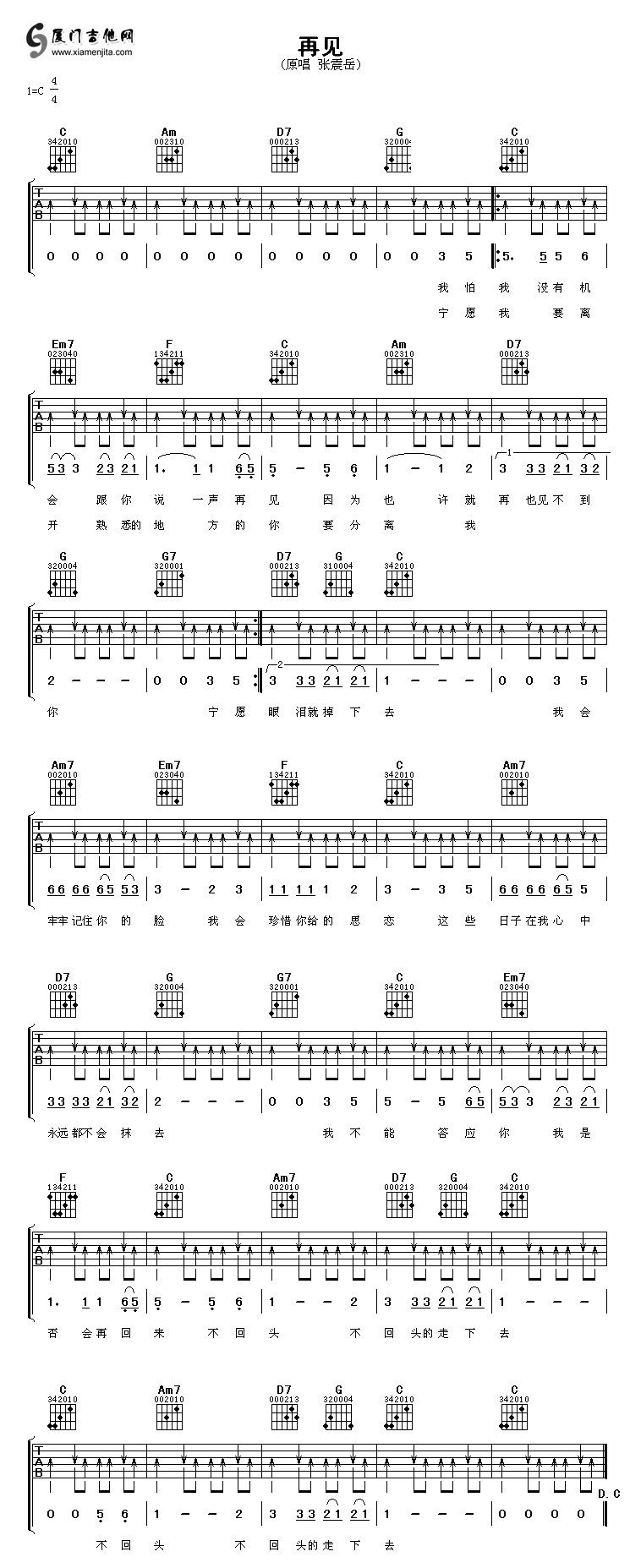 再見(張震岳)六線譜/簡(jiǎn)譜/歌詞