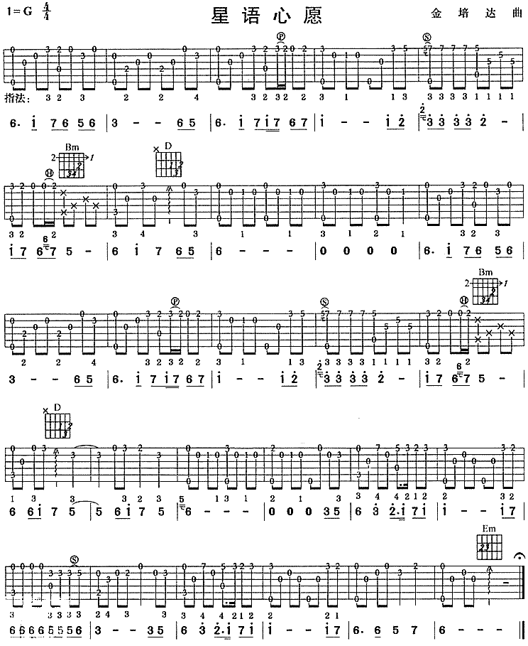 星語(yǔ)星愿 六線譜/獨(dú)奏/簡(jiǎn)譜/歌詞
