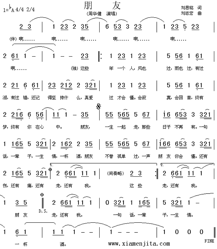 朋友(周華。┖(jiǎn)譜/歌詞/簡(jiǎn)介
