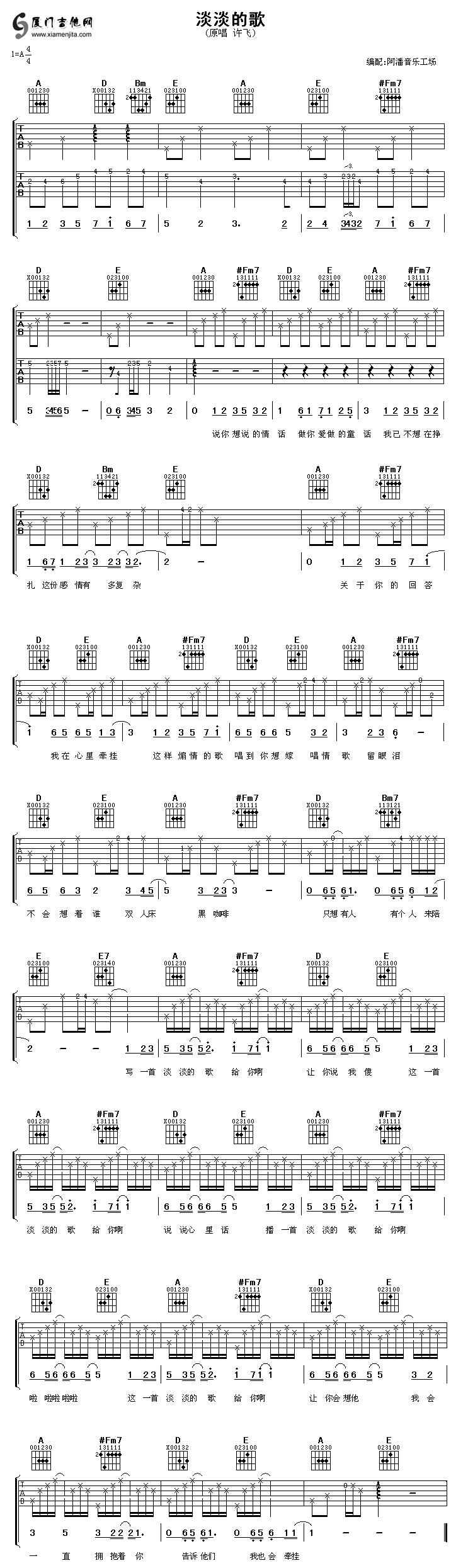 淡淡的歌(許飛)六線譜/簡(jiǎn)譜/歌詞