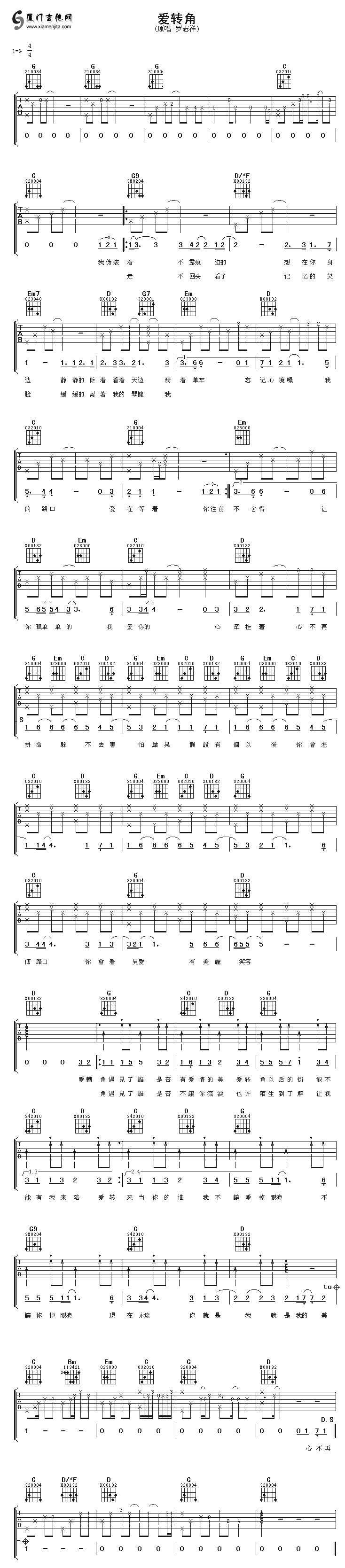 愛(ài)轉(zhuǎn)角(羅志祥)六線譜/簡(jiǎn)譜/歌詞