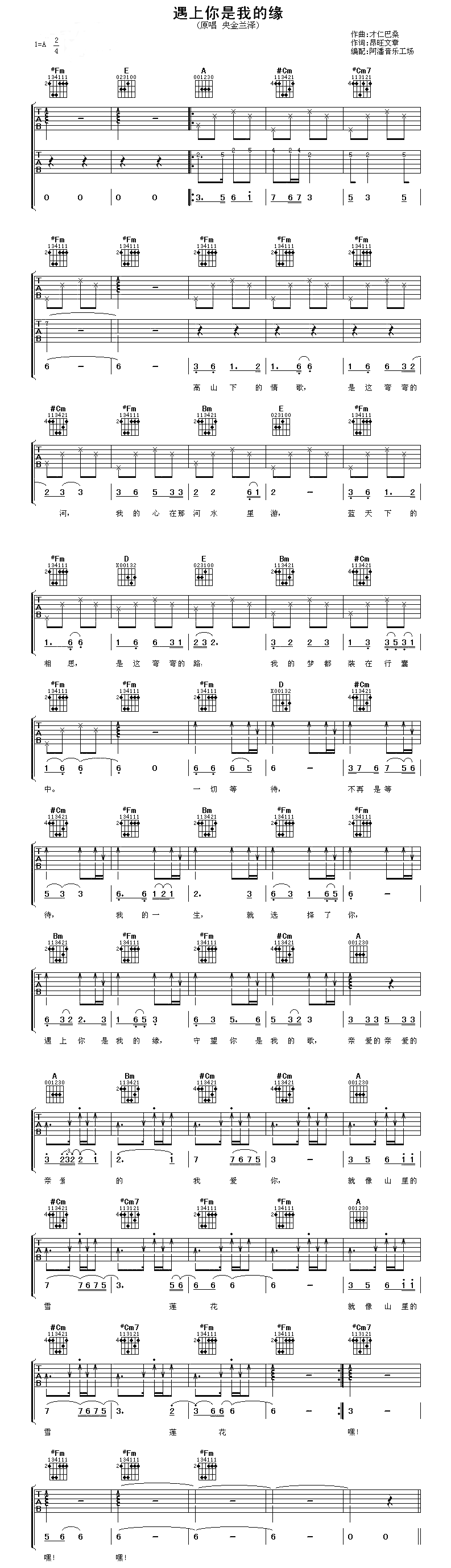 遇上你是我的緣(央金蘭澤) 六線譜/簡(jiǎn)譜/歌詞