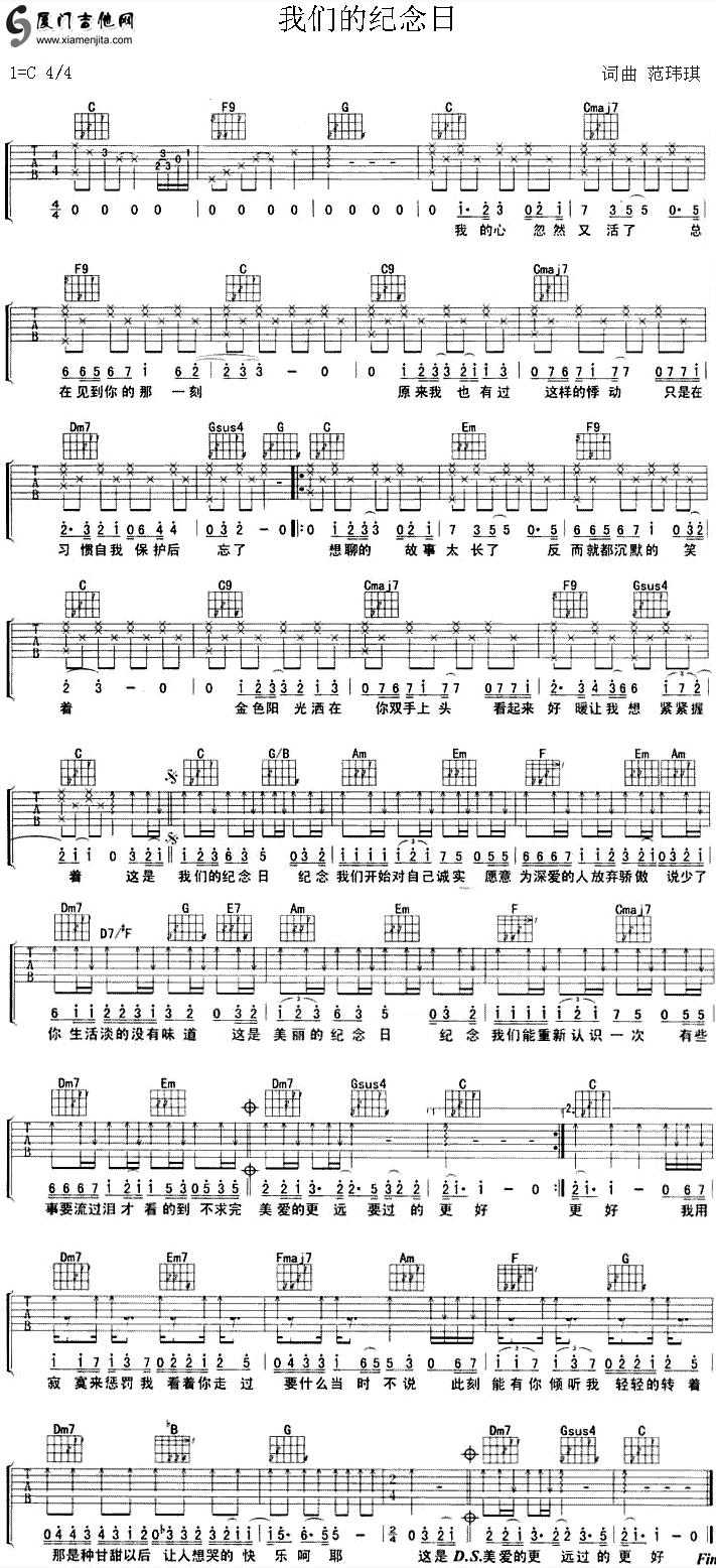 我們的紀(jì)念日(范瑋琪)六線譜/簡(jiǎn)譜/歌詞