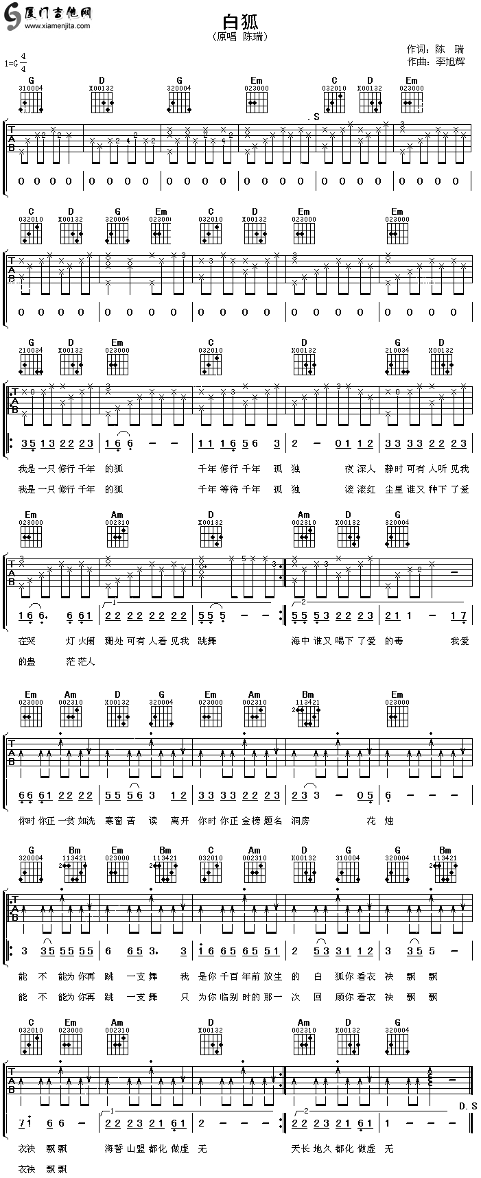 白狐(陳瑞) 六線譜/簡(jiǎn)譜/歌詞