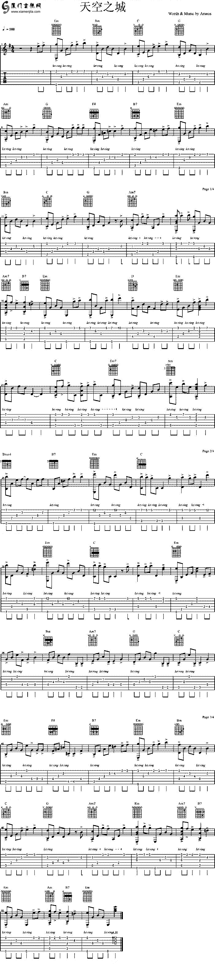 天空之城(獨(dú)奏) 六線譜/五線譜
