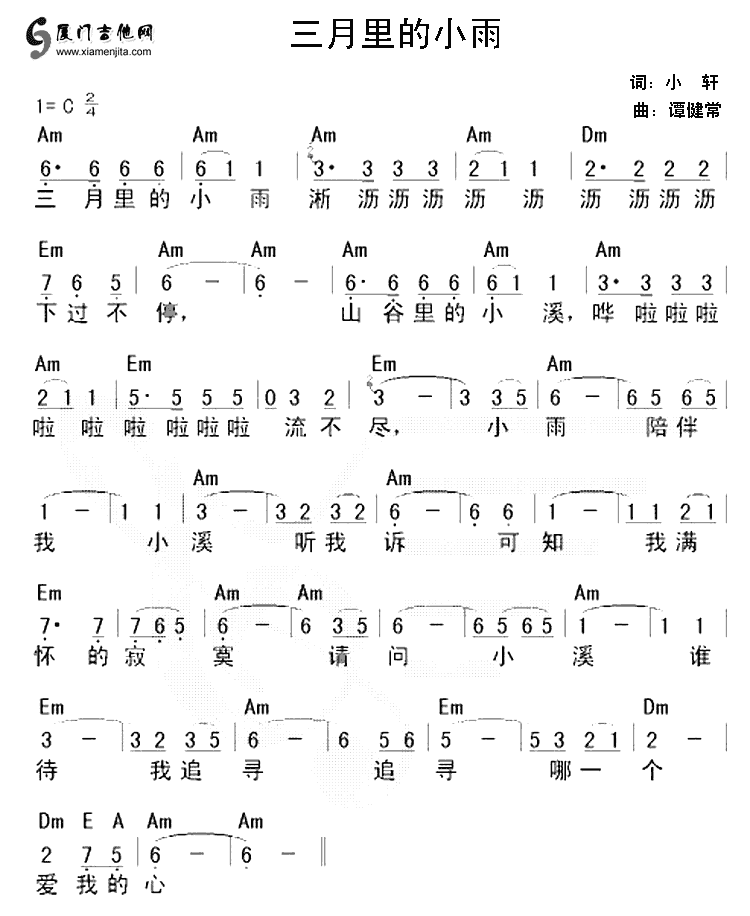 三月里的小雨 簡(jiǎn)譜/和弦/歌詞