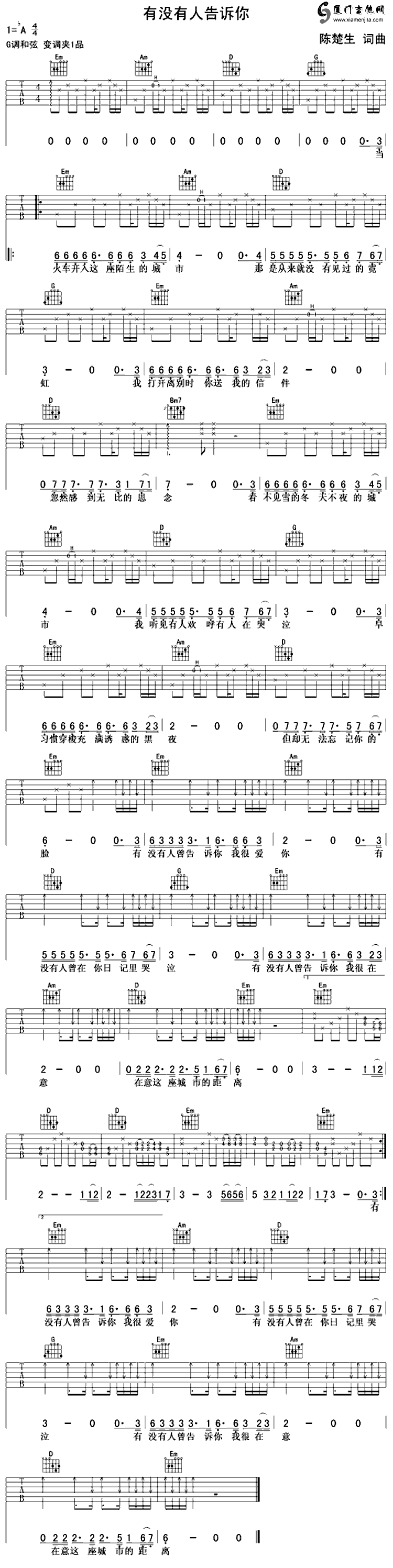有沒有人告訴你(陳楚生)六線譜/簡(jiǎn)譜/歌詞