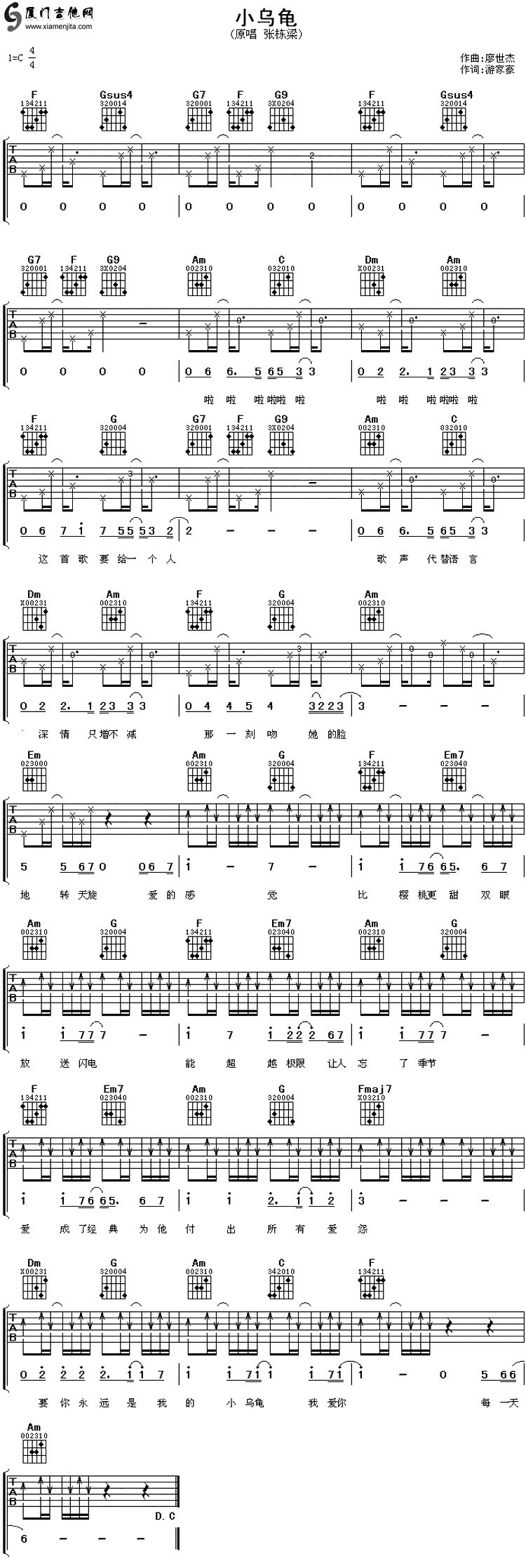 小烏龜 六線譜/簡(jiǎn)譜/歌詞