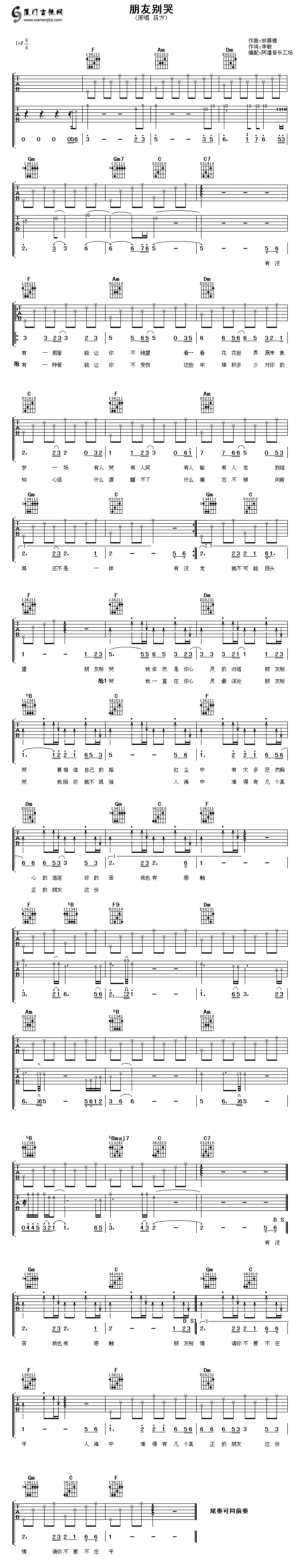 朋友別哭(呂方) 六線譜/簡(jiǎn)譜/歌詞