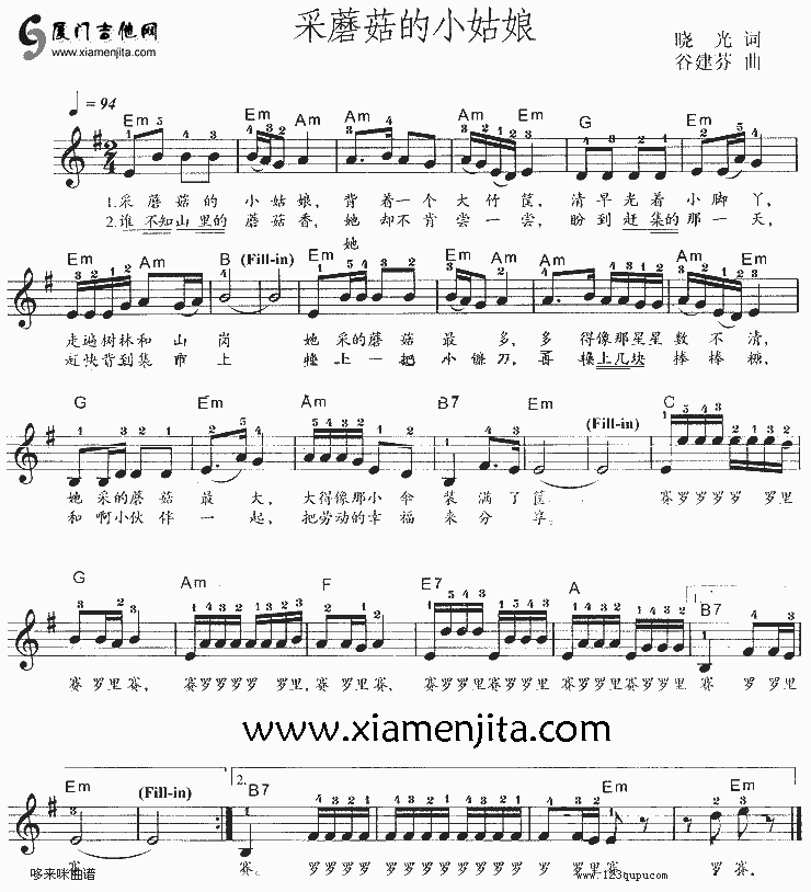 采蘑菇的小姑娘(谷建芬) 五線譜/歌詞