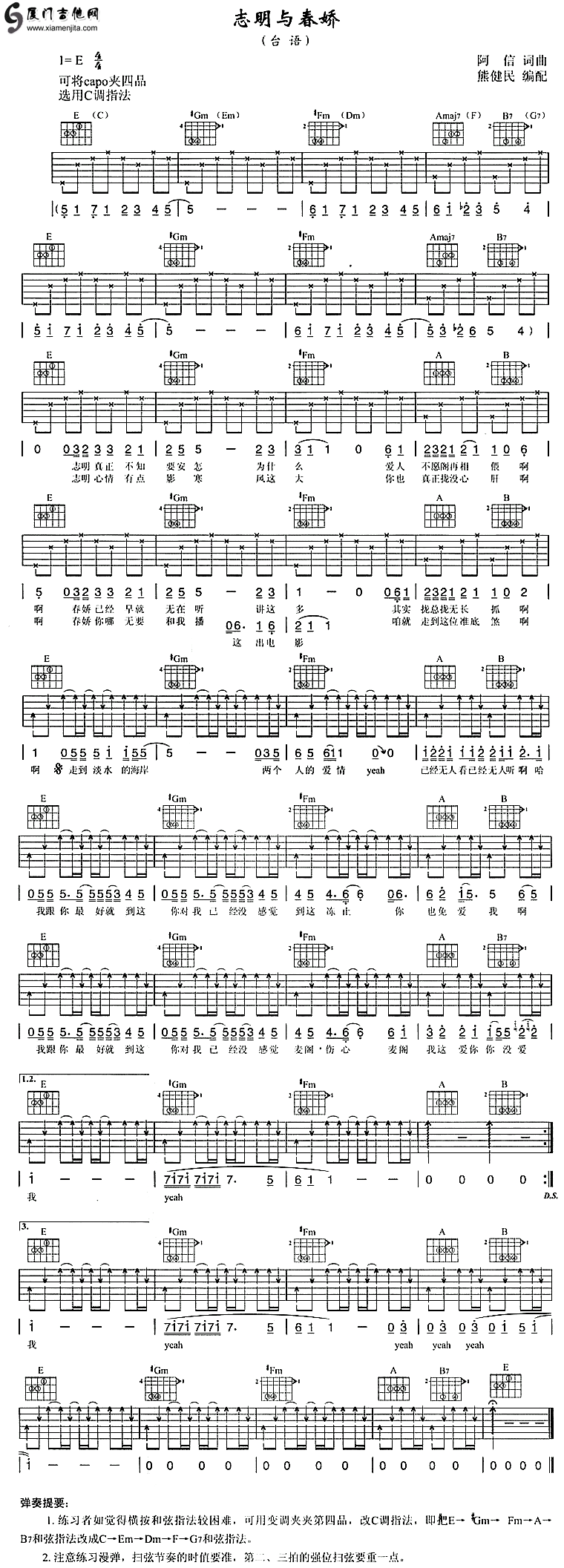 (臺語)志明與春嬌(五月天) 六線譜/簡譜/歌詞/歌譜