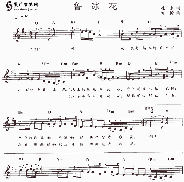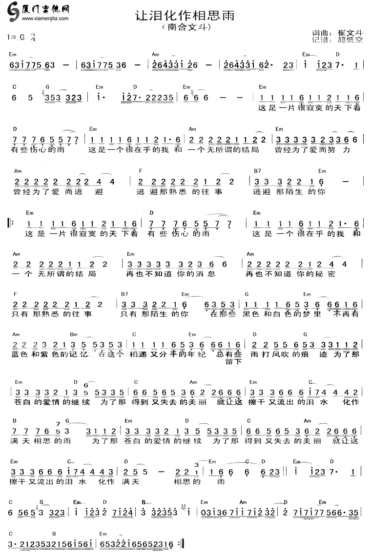 讓淚化作相思雨(南合文斗) 簡譜/歌詞/和弦