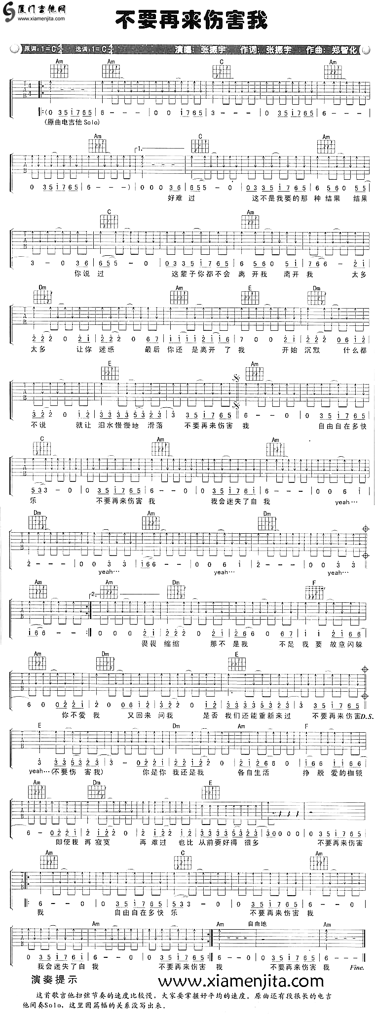 不要再來傷害我(張振宇) 六線譜/簡譜/歌詞