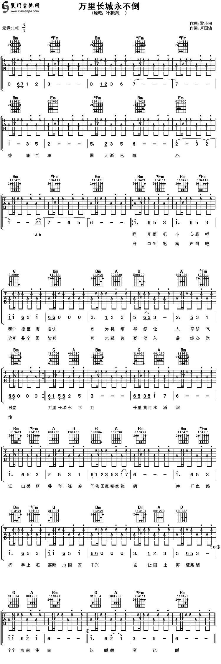 萬里長城永不倒 六線譜/簡譜/歌詞/霍元甲簡介
