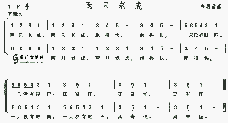 兩只老虎(法國兒歌) 簡譜/歌詞